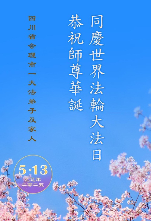 (Minghui.org) O dia 13 de maio de 2025 marca o 26º Dia Mundial do Falun Dafa e o 33º aniversário da introdução pública do Falun Dafa. Esse dia também é o aniversário do Mestre Li Hongzhi, o fundador do Falun Dafa. Praticantes de todo o mundo estão enviando suas sinceras saudações para celebrar essa grande ocasião e homenagear o reverenciado Mestre neste dia especial.