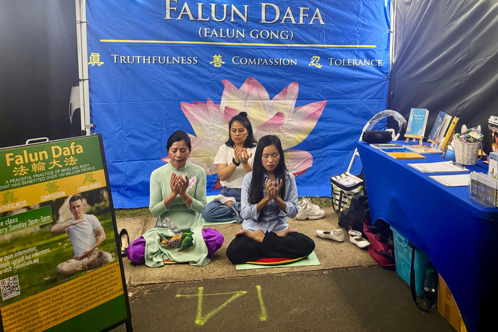 Por meio de demonstrações de exercícios e cartazes no estande do Falun Dafa, os praticantes ilustraram como a prática melhora a mente e o corpo. Ao conversarem com os transeuntes, compartilharam experiências pessoais de aplicação dos princípios Verdade-Compaixão-Tolerância no dia a dia e os resultados positivos obtidos. Impressionados com a paz interior proporcionada pela prática, muitos participantes elogiaram os ensinamentos do Falun Dafa por sua contribuição para o fundamento moral da nossa sociedade.