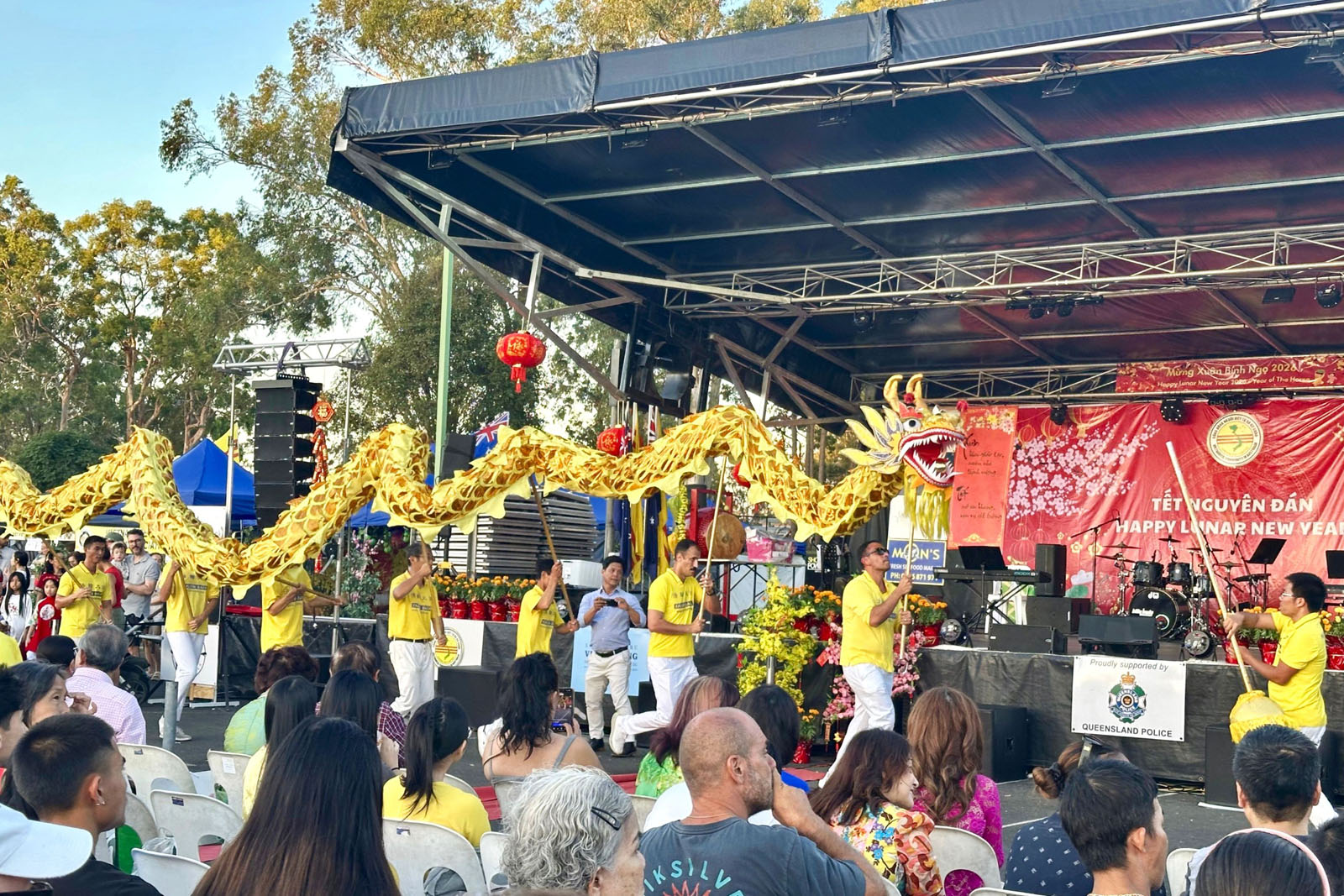 (Minghui.org) Os praticantes do Falun Dafa em Queensland participaram de uma celebração do Ano Novo Chinês em Brisbane, nos dias 20 e 21 de fevereiro, e apresentaram o idioma. Autoridades governamentais e moradores vietnamitas locais participaram do evento no Freedom Place, em Inala, nos arredores de Brisbane.