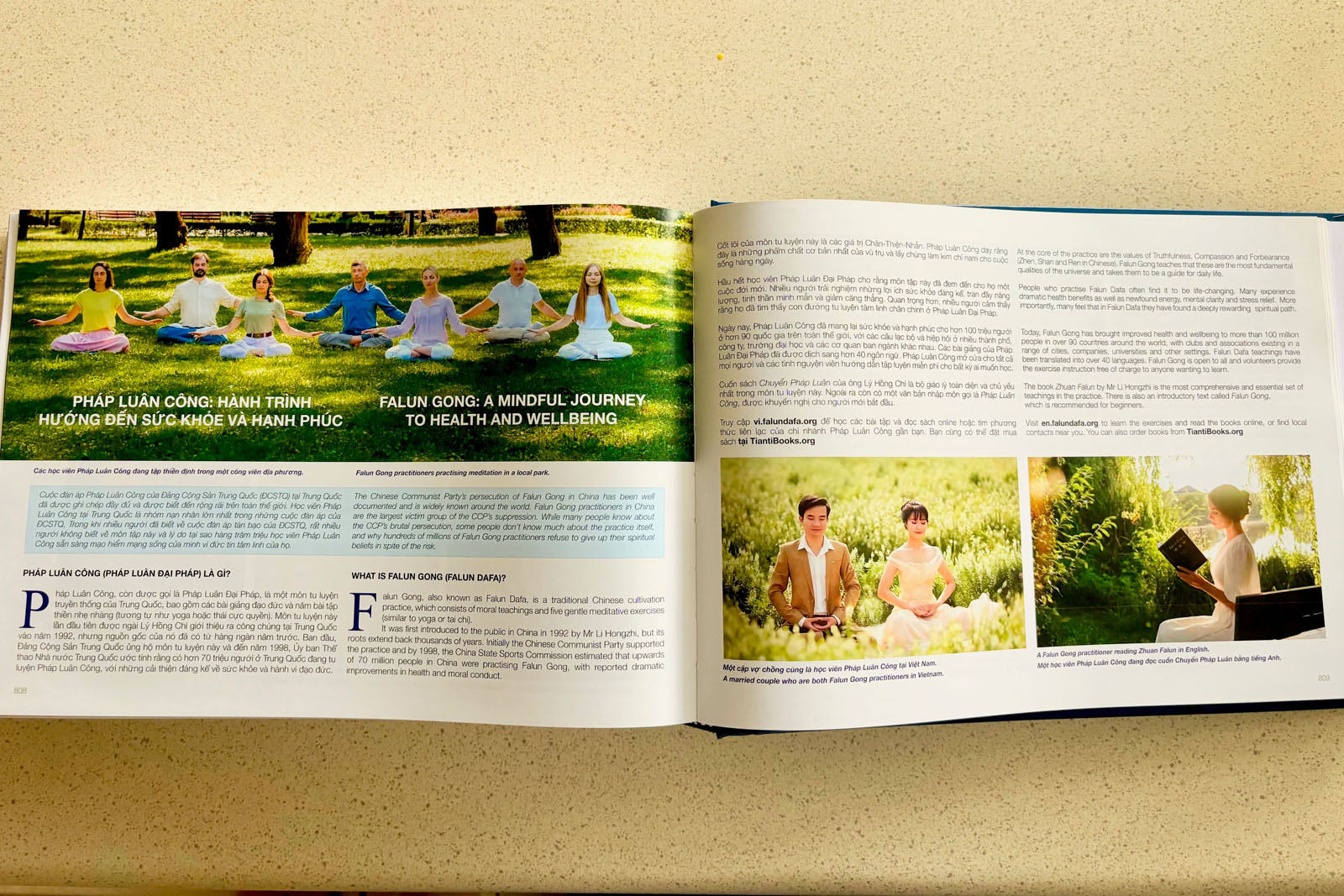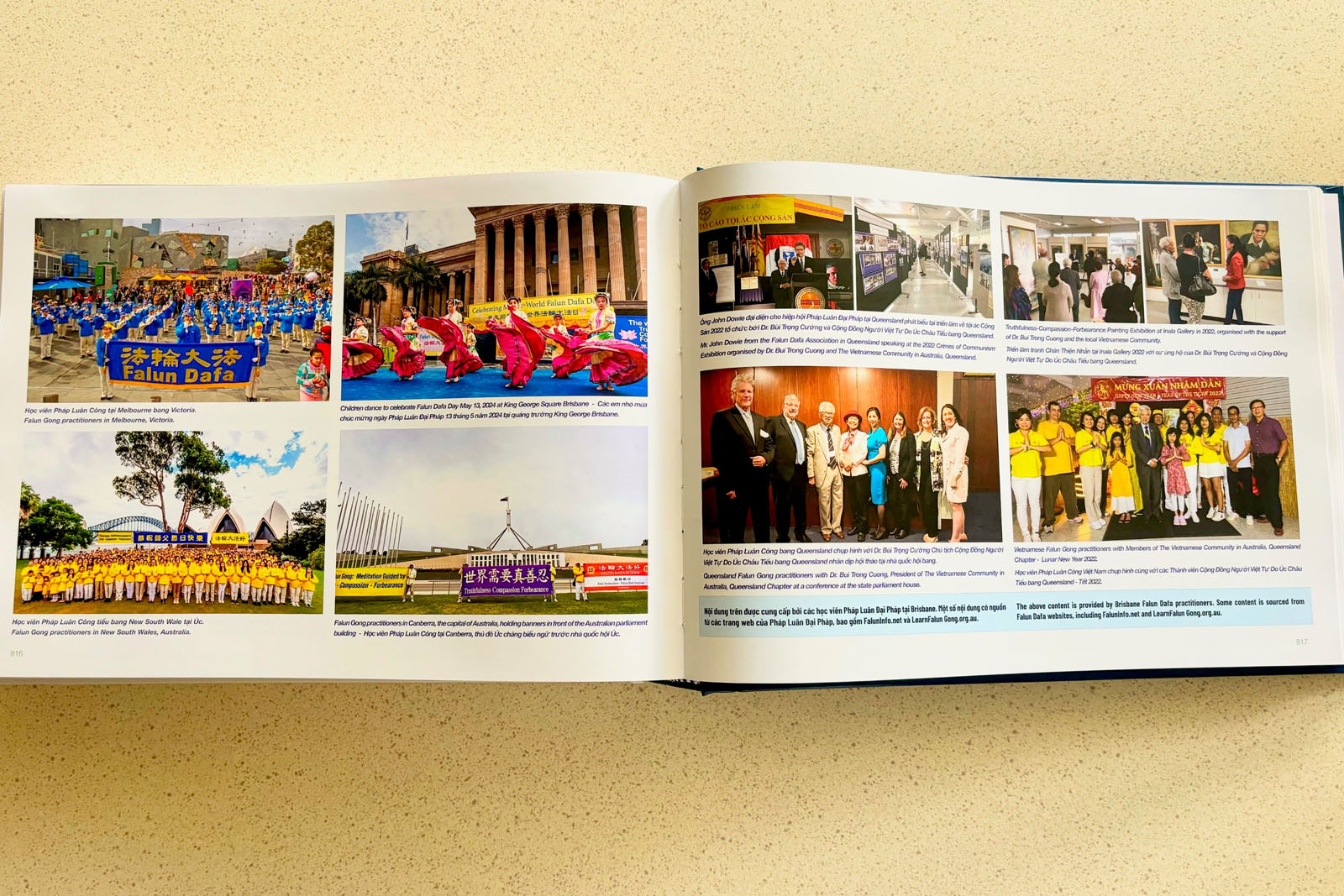 O livro também inclui diversas fotos e informações sobre o Falun Dafa. Nguyen e Le afirmaram que a inclusão dessas informações demonstra o apoio da comunidade vietnamita ao Falun Dafa, que compartilha as mesmas crenças e experiências semelhantes. O Falun Dafa foi perseguido pelo Partido Comunista Chinês (PCC), enquanto os imigrantes vietnamitas também foram perseguidos sob o regime comunista. Após fugirem do Vietnã e chegarem à Austrália, uma terra livre, estável e respeitada, eles naturalmente apoiaram o Falun Dafa.